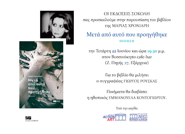 Το κείμενο του ποιητή Γιώργου Ρούσκα αναγνώστηκε στην παρουσίαση του βιβλίου "Μετά από αυτό που προηγήθηκε", Εκδ. Σοκόλη και δημοσιεύτηκε στον Πολιτιστικό Site Paspartou https://paspartou.gr/giorgos-royskas/meta-apo-ayto-poy-proigithike-tis-marias-hroniari-ekdoseis-sokoli-2020 ΤΑ ΔΙΚΑΙΩΜΑΤΑ ΤΩΝ ΦΩΤΟΓΡΑΦΙΩΝ ΑΝΗΚΟΥΝ ΣΤΟΝ ΧΑΡΗ ΤΣΙΛΟΠΟΥΛΟ ΚΑΙ ΟΠΟΙΑΔΗΠΟΤΕ ΑΝΑΠΑΡΑΓΩΓΗ ΤΟΥΣ ΔΙΩΚΕΤΑΙ ΠΟΙΝΙΚΑ.